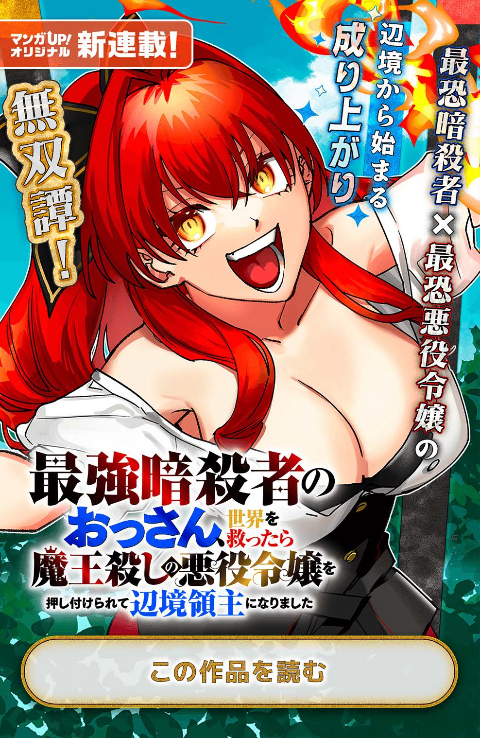 最強の暗殺者にして魔王軍との戦争で活躍した英雄セノウに与えられた褒美は、絶世の美女と領地。だが実態は、魔王殺しの悪役令嬢アリシア・スカーレットと、その悪役令嬢が燃やした魔王城の跡地だった。平和になったと思った王家にとって、手に余る力を持つ二人は厄介な存在でまとめて僻地へ隔離したという形だった。厄介払いされた二人だが、何もない魔王城跡地を発展させるべく動き出す。そこにはセノウを慕う人間や魔族が徐々に集まっていくことに……。一方、アリシアとセノウを不要として追い出した王国は、予定通り二人を亡き者にするため軍を差し向ける。だが強すぎる二人にとって王国も、魔王軍の生き残りも脅威ではなく……?捨てられた英雄たちが送る逆転無双譚!