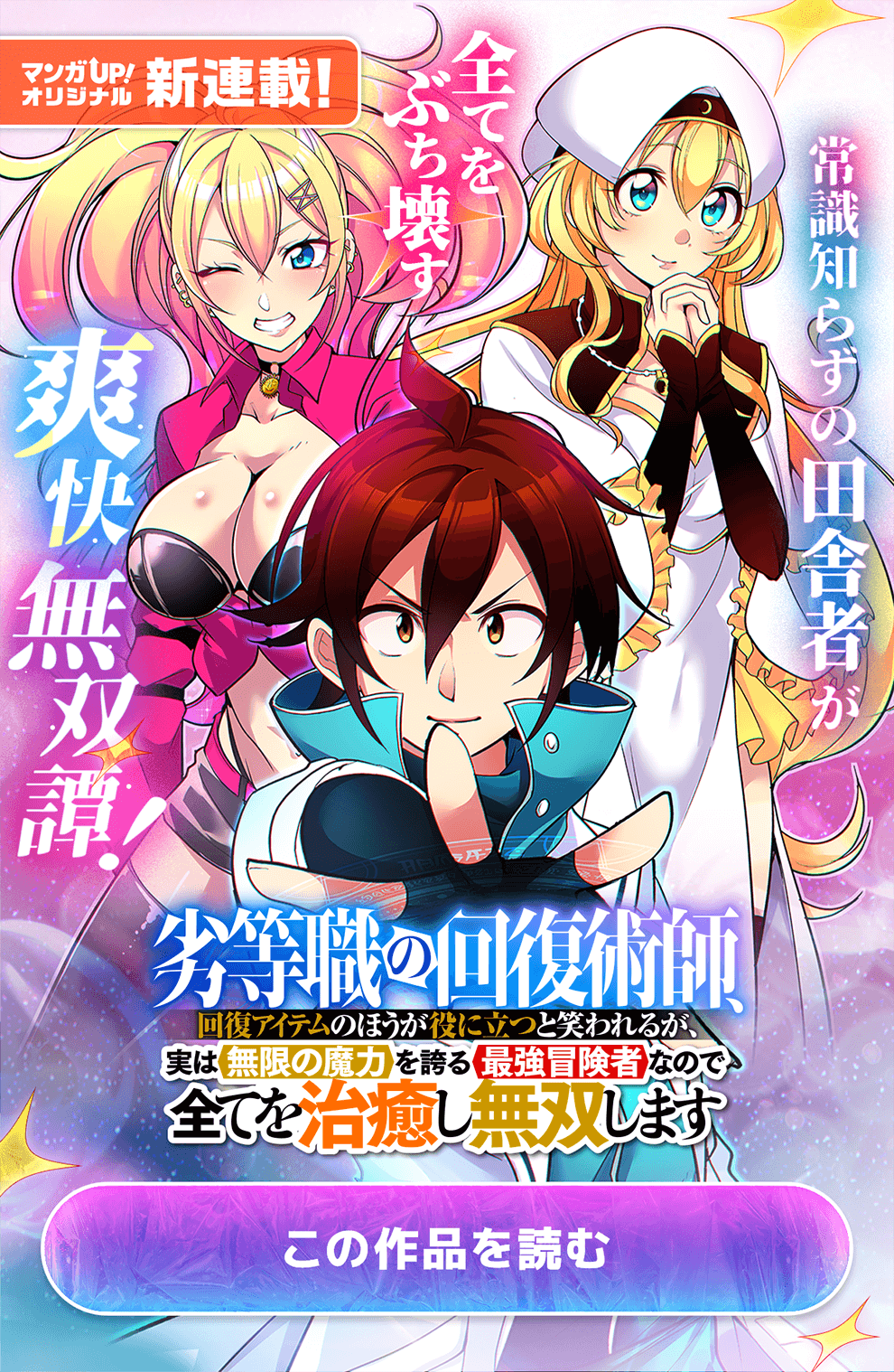 迷宮(ダンジョン)と呼ばれる魔物を生み出し続ける巨大な塔。 回復術師である田舎者の少年エトは、自分を鍛えてくれた師匠の勧めで迷宮攻略に身を乗り出す。 しかし世間では回復術というものは多大な魔力が必要で、回復アイテムに劣るものと位置づけられていた。 そんな中、規格外の魔力を持つエトは悪評をものともせず全てを治し続け、自らも前線で戦うという常識外れの戦い方で探索者の価値観をぶち壊していく。 あり得ない早さで迷宮を攻略していくエトはやがて、大陸全土にその名を知らしめる最強の存在へと成り上がっていく。