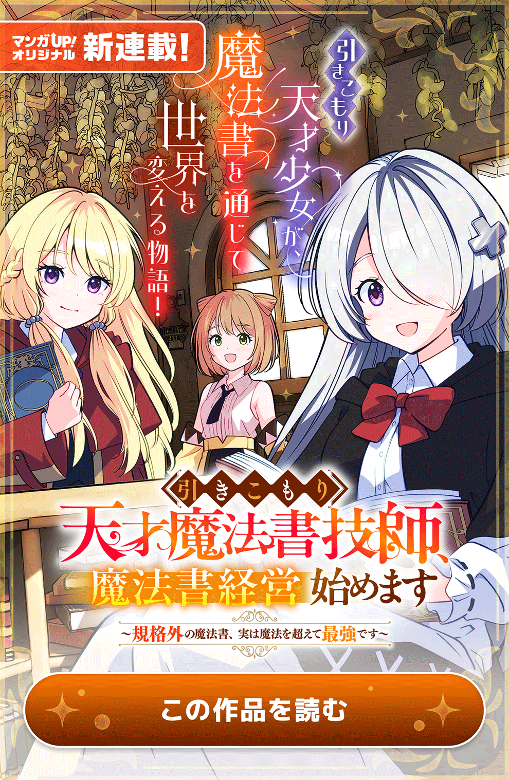規格外の力量を持つ魔法書技師、セリアには致命的な欠点があった。 「わ、私……あの……その……!」 極度の人見知りで、会話なんてもってのほか。そのせいで、自らが経営する魔法書店の売り上げはほぼ地を這い続けていた。 そんなセリアに、突然訪れたのは、3年眠り続けた母を起こしてほしいという、お貴族様の依頼!? 「私のお母さまをどうか救ってほしい……!」 学業優秀、魔法も一流。社交界での人気も高い、伯爵令嬢・リーゼロッテは頭を下げる。 「私には無理ですぅぅぅぅぅぅぅぅぅぅぅぅぅぅぅぅぅぅぅぅぅぅっ!!!!!」 しかし、逃げようとするセリア。 そんな二人が送る、ドタバタ魔法書経営コメディ。