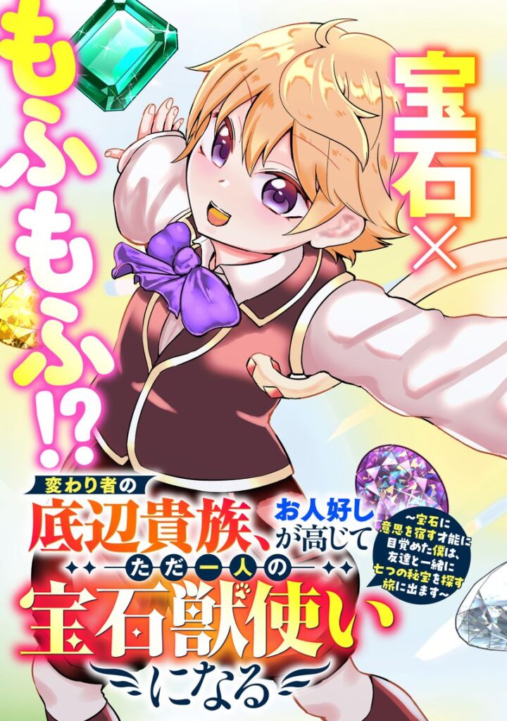 宝石集めが趣味の少年:アルマはある日、意地悪な兄にそそのかされ危険な洞窟に宝石探しに行ってしまう。 宝石探しに熱中し、夜も更けてきたころ、突然現れたヒュドラに襲われるアルマ。 追い詰められ絶体絶命なその時、突然握りしめた宝石が輝きだし──現れたのは、伝説の『宝石獣』だった! 可愛いもふもふな姿とは裏腹に、圧倒的な力でヒュドラを撃退してくれる宝石獣:ルビー。 ルビーと友達になったアルマは、ルビーの記憶からその仲間の存在を知る。 そうしてアルマとルビーは、公爵家を飛び出し『宝石獣』を探す旅に出る! 一方、アルマを追い出した公爵家はルビーの価値に気づき、連れ戻そうとするが……